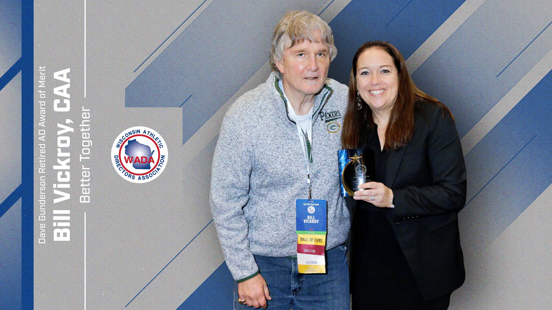 The Dave Gunderson Retired Athletic Director Award of Merit is given annually to a retired Athletic Director who has gone above and beyond in their willingness to help during the November Conference. The award can only be received once and is recommended by the Retired Liaison to the WADA Board for approval.